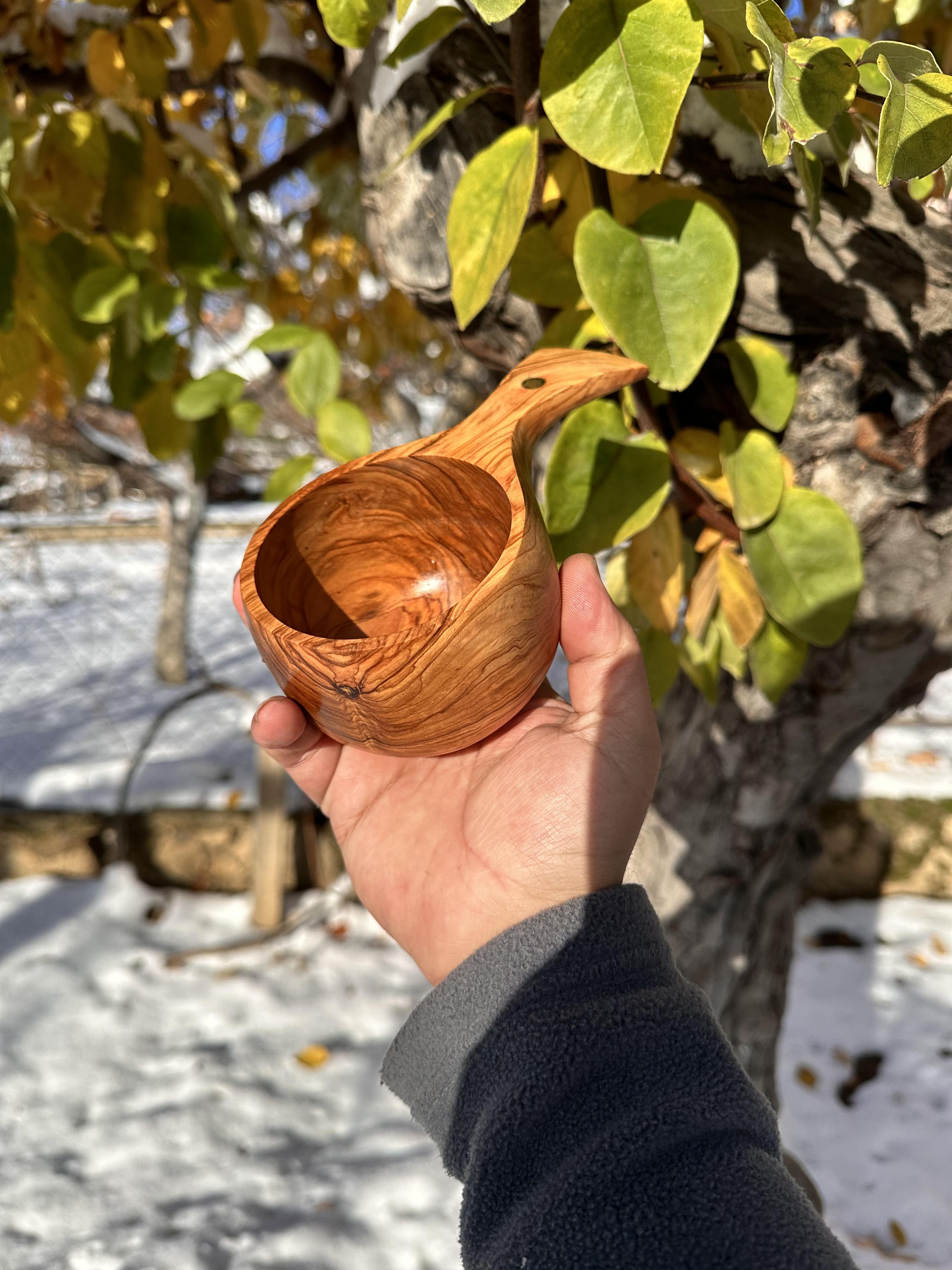 Zeytin ağacından tamamen el işçiliği ile yapılmıştır. Zeytin ağacı çok sert, dayanıklı ve eşsiz dokusu ve deseni olan bir ağaçtır.